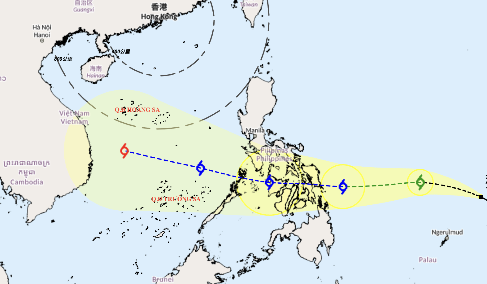 Số liệu dự báo hiện tại cho thấy những ngày tới, bão di chuyển theo hướng tây, hướng về phía Philippines.