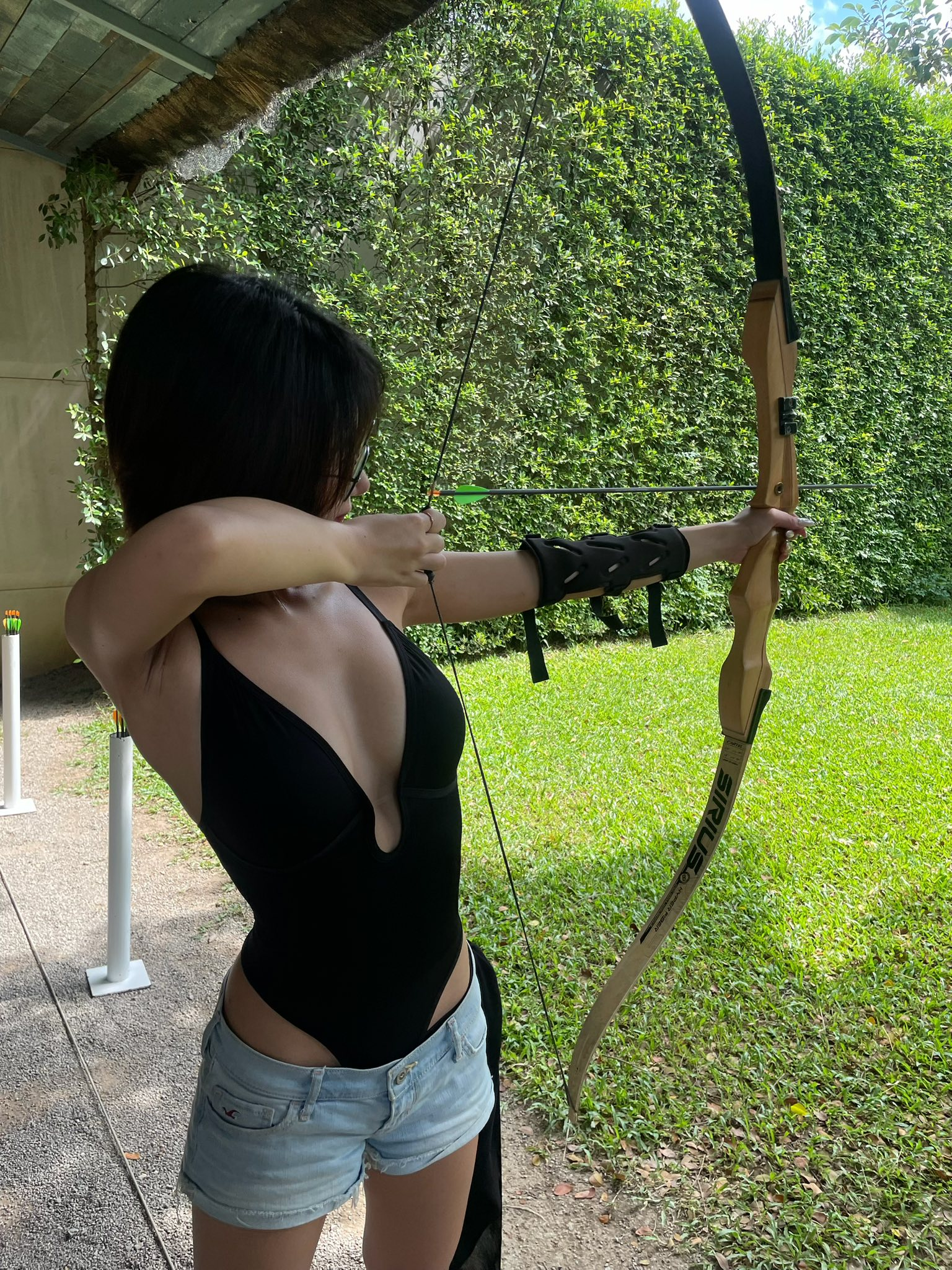 Thời gian gần đây, giới trẻ đang rộ lên trào lưu trải nghiệm các bộ môn thể thao năng động như leo núi, bắn cung, cưỡi ngựa hay chèo SUP. Không chỉ giúp rèn luyện sức khỏe, những hoạt động này còn mang đến cơ hội “check-in” cực chất, thể hiện phong cách sống khỏe – đẹp – năng động. Các hot girl châu Á cũng nhanh chóng hưởng ứng xu hướng này, vừa tận hưởng niềm vui vận động, vừa khiến người hâm mộ “bỏng mắt” với những khung hình cực kỳ cuốn hút.Điển hình trong số đó là Nhompangz Toasty – hot girl nổi tiếng người Thái Lan với hơn 100.000 người theo dõi trên mạng xã hội. Cô nàng vốn được biết đến với phong cách trẻ trung, gợi cảm và năng lượng tích cực. Mới đây, Nhompangz đã chia sẻ loạt ảnh khi đi bắn cung tại một khu nghỉ dưỡng xanh mát. Chỉ sau ít giờ đăng tải, bộ ảnh nhanh chóng lan truyền mạnh mẽ và thu hút hàng chục nghìn lượt tương tác.