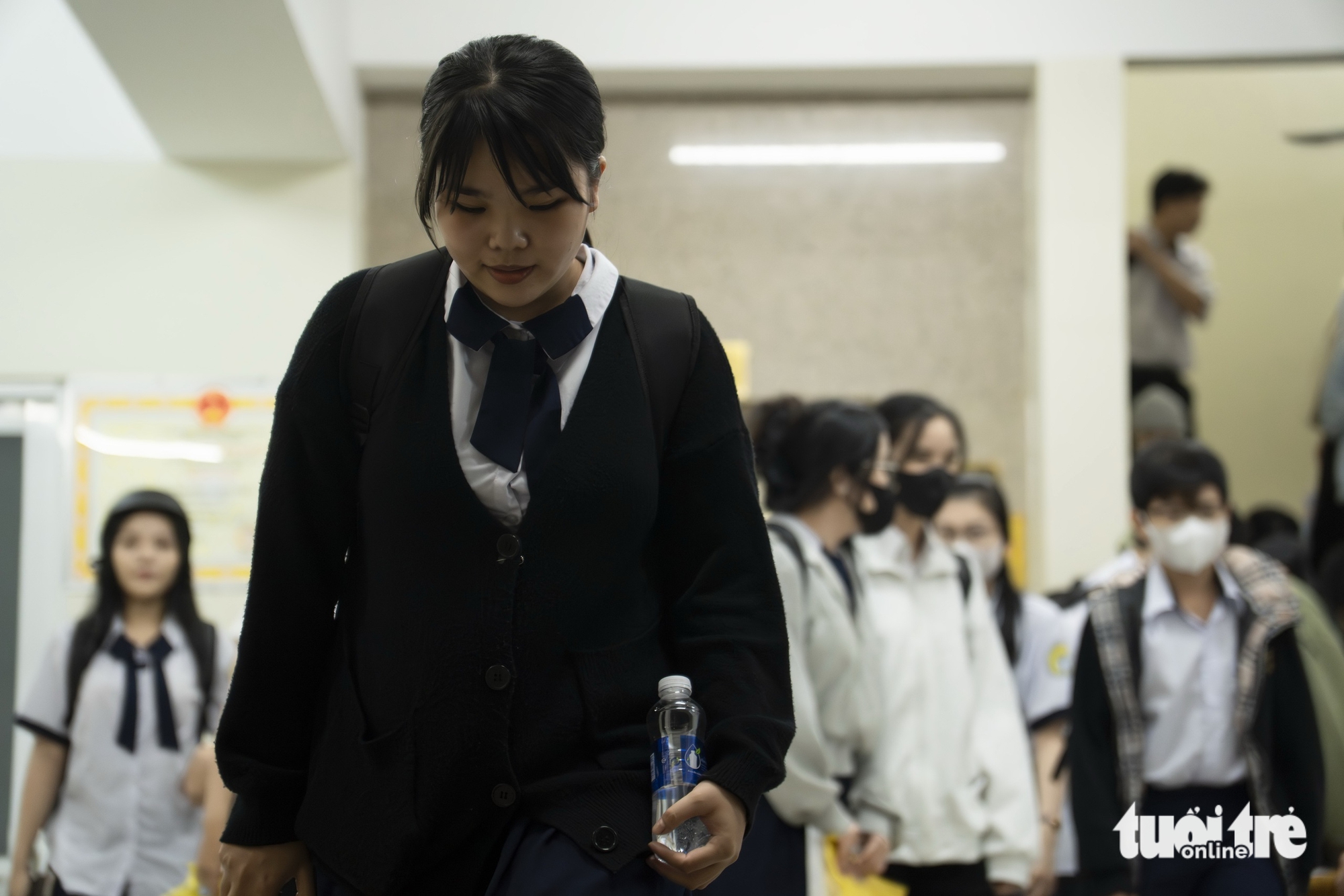 Rất dễ nhận ra cô gái 22 tuổi trong dòng học sinh ở trường - Ảnh: AN VI