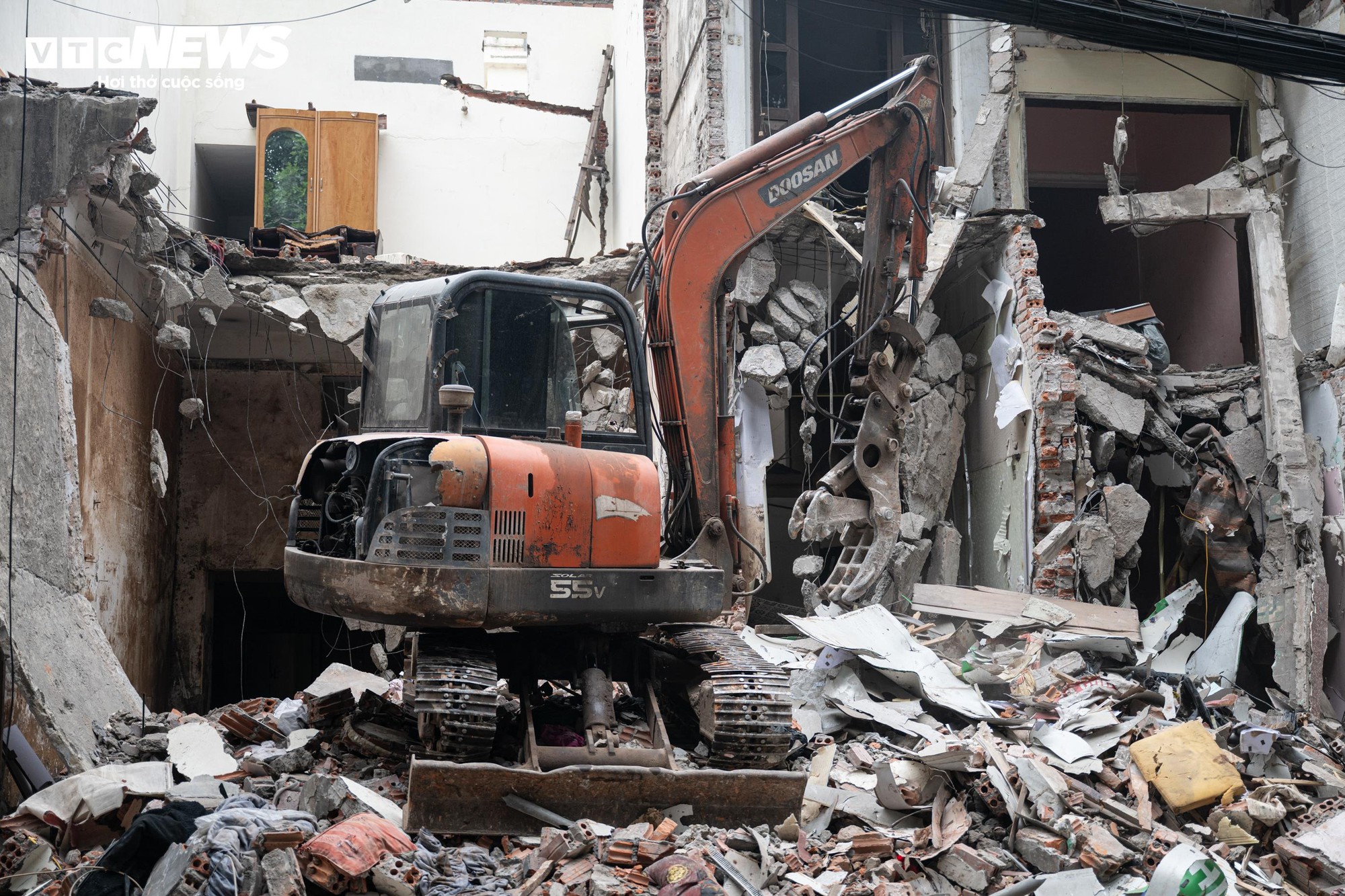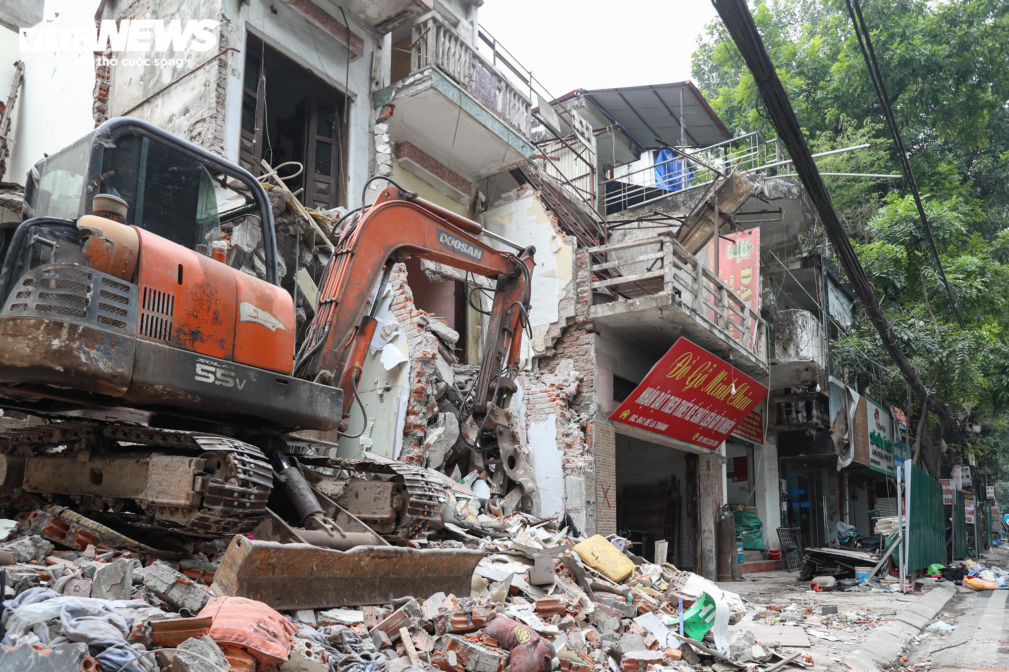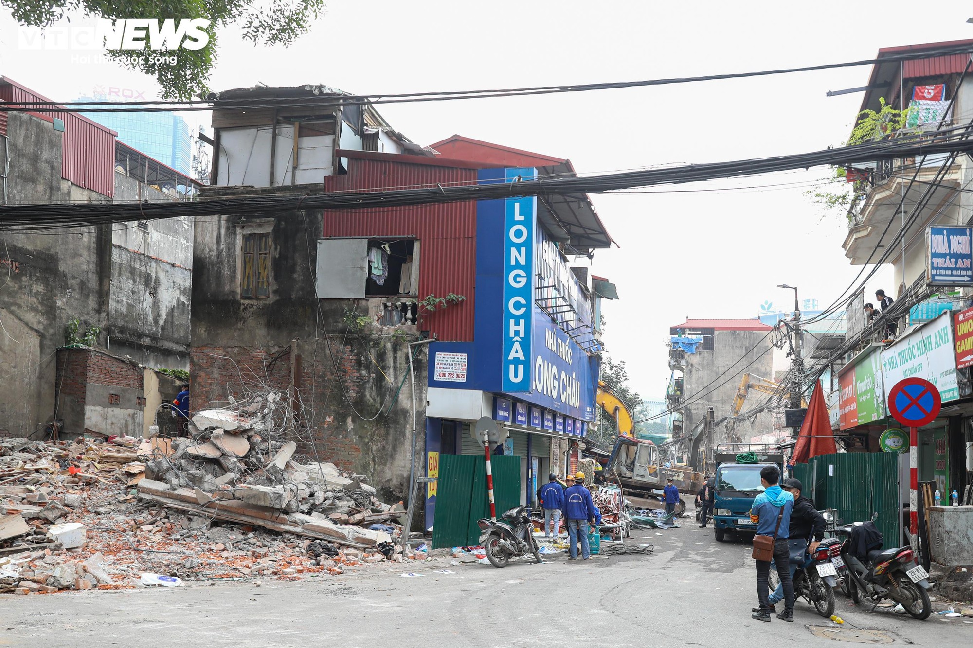 Máy móc đã được huy động tối đa để tiến hành tháo dỡ đồng loạt nhiều công trình, nhằm bàn giao mặt bằng cho việc thi công dự án đường Vành đai 1 đoạn Hoàng Cầu - Voi Phục.