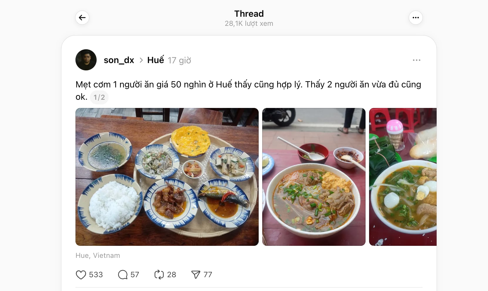 Tuy nhiên một số cư dân mạng xứ Huế xác nhận đây là chuyện hoàn toàn bình thường, bởi Huế từ lâu nổi tiếng có nhiều quán ăn ngon, rẻ, chất lượng.