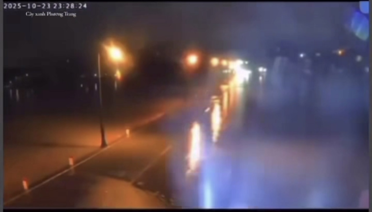 Đoạn clip ghi lại lúc 23 giờ 28 phút tối 23-10. Trong ánh đèn vàng hắt xuống mặt đường khi trời đang mưa, người đàn ông ấy đứng trên chiếc thang, một tay giữ thăng bằng, tay kia cầm cây sào có cuốn giấy khô, kiên nhẫn lau chùi ống kính camera bị mờ vì nước mưa.
