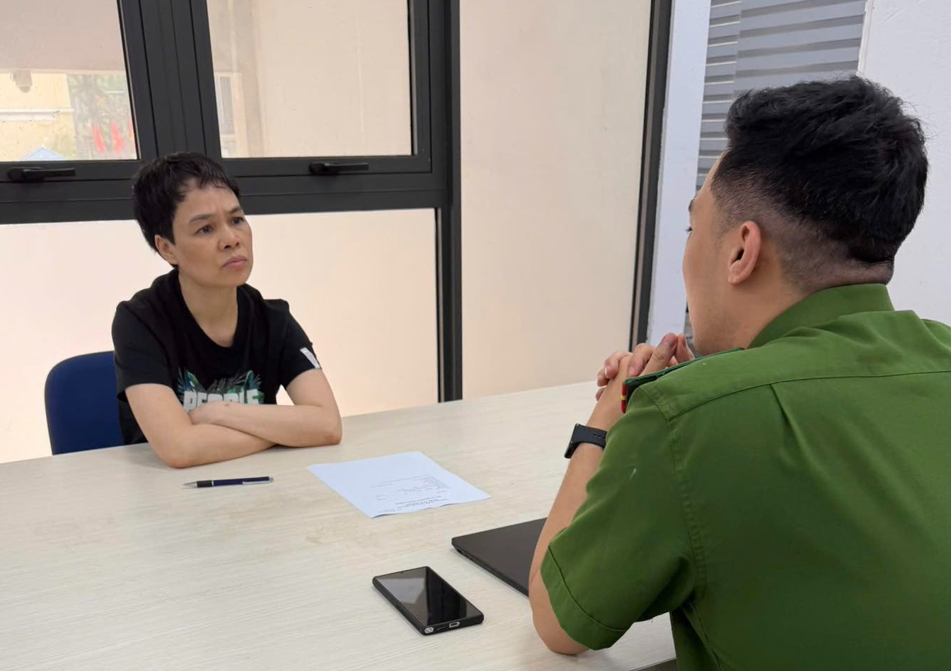 Công an làm việc với đối tượng Trần Thị Xuân Hương - Ảnh: Công an cung cấp