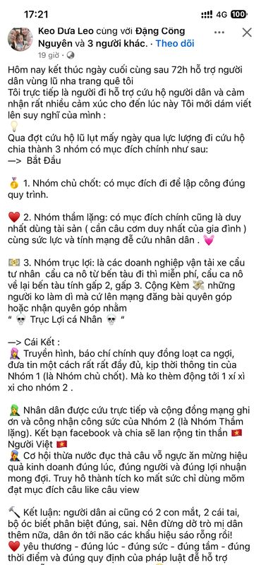 Cá nhân tao thì thấy ok với nhóm này, nó ko hoàn toàn là xấu vì cách này cho phép 2 bên cùng có lợi: 1 bên thì được cứu trợ, dù ít hay nhiều, còn 1 bên thì ghi hình ảnh trước công chúng và nhà nát. Từ đó khuyến khích nhiều doanh nghiệp tham gia cứu trợ dân gặp nạn hơn.