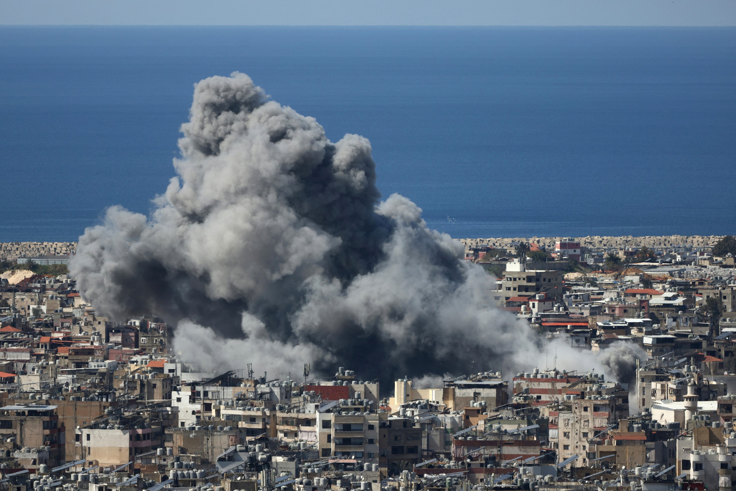 Một khu vực ở thủ đô Beirut của Lebanon bị trúng không kích ngày 9-3 - Ảnh: AFP