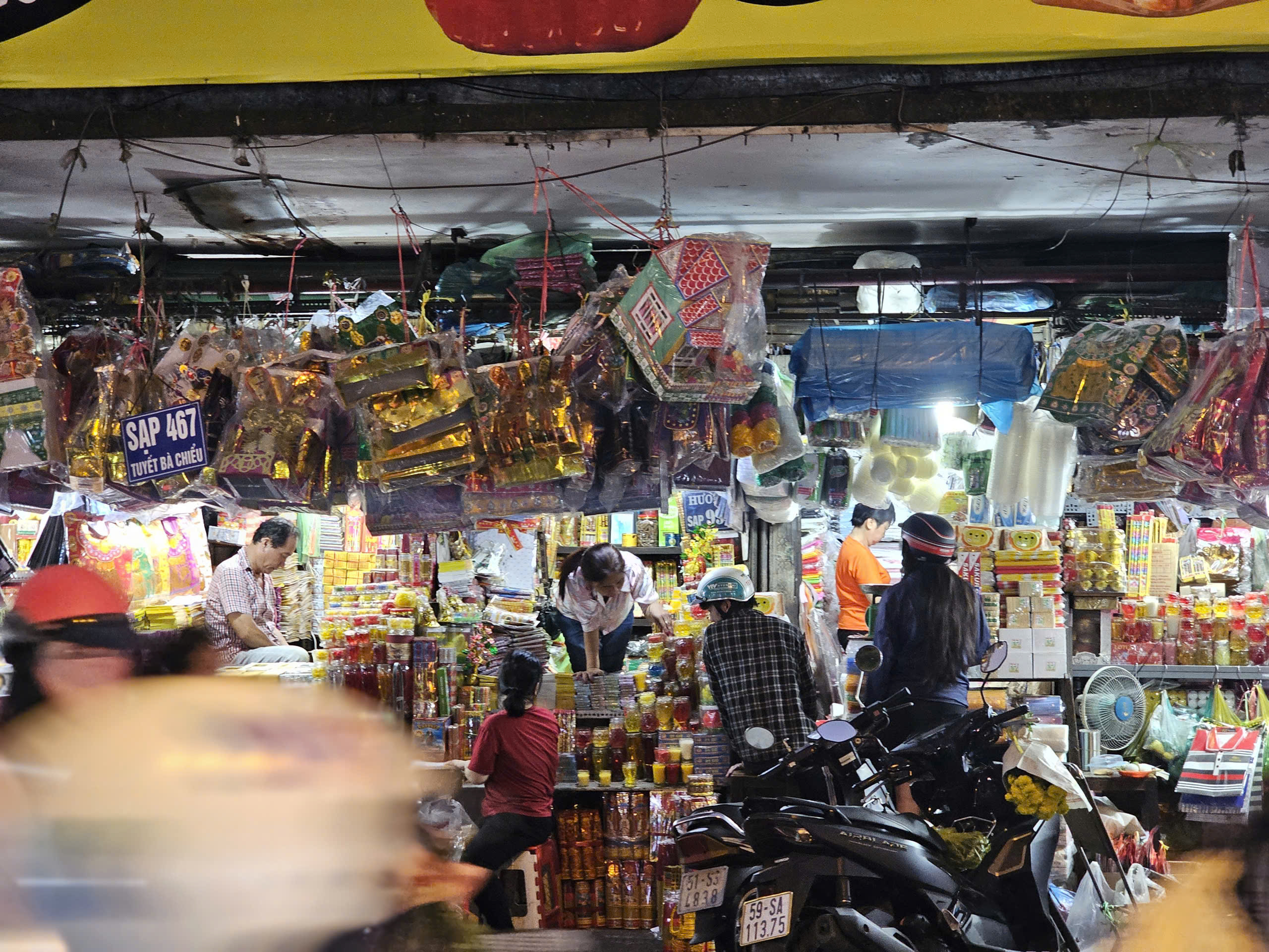 Nhiều tiểu thương chia sẻ những ngày trước chợ khá vắng, không khí mua sắm trầm lắng. Chỉ hai ngày cận lễ 23 tháng chạp, lượng khách mới bắt đầu nhích lên, khiến không khí Tết tại chợ rõ rệt hơn, song phần lớn xu hướng sắm sửa vẫn gọn nhẹ, chi tiêu chừng mực.