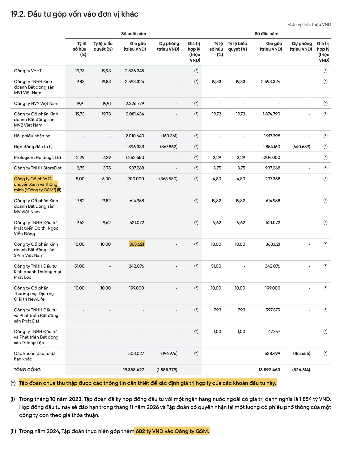 Mày nhìn vào cái cột "Dự phòng" ở mục 19.2 đầu tư góp vốn vào đơn vị khác của Báo cáo thường niên 2024, nó ghi âm 363 tỷ đồng.